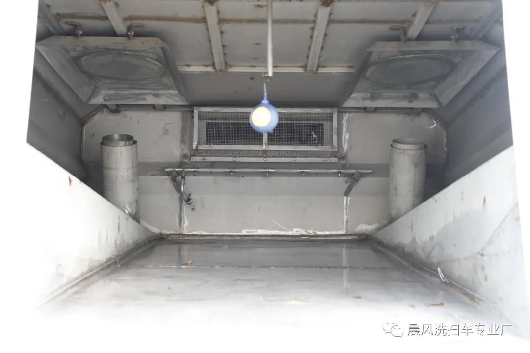 19)污水箱內采用大平面斜坡結構,最大卸料角度可達50度,更易于傾倒垃圾。污水箱內設置了防溢滿報警裝