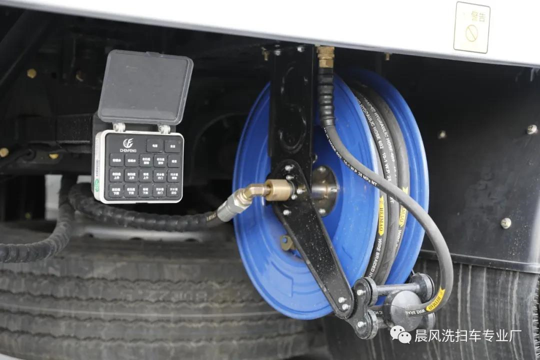 22)側后部裝有機械式自動卷繞沖洗卷盤,配20m高壓軟管和不同角度的清洗槍,可用于清洗車身和其它設備